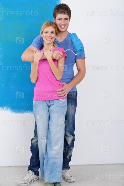 Счастливая молодая пара делает ремонт