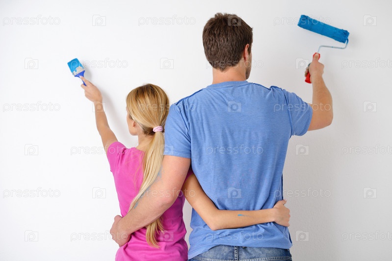 Счастливая молодая пара делает ремонт