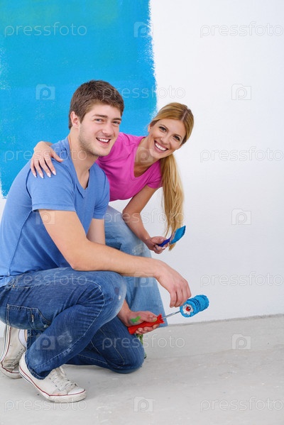 Счастливая молодая пара делает ремонт