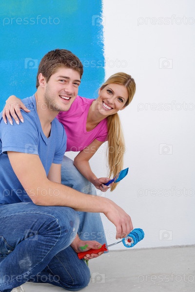 Счастливая молодая пара делает ремонт