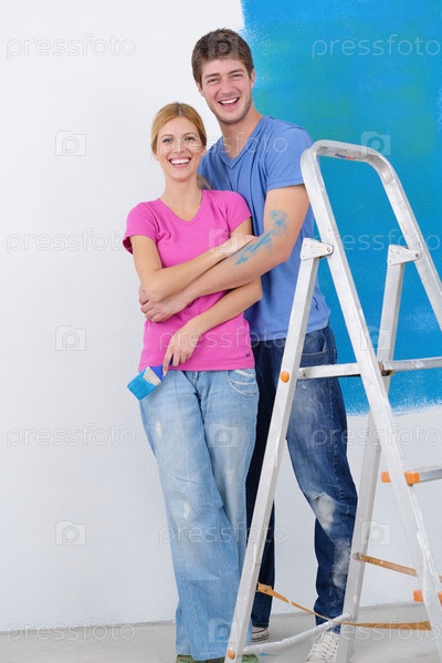 Счастливая молодая пара делает ремонт