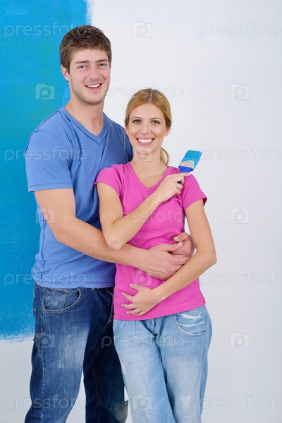 Счастливая молодая пара делает ремонт