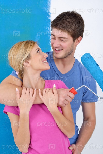 Счастливая молодая пара делает ремонт