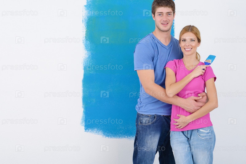 Счастливая молодая пара делает ремонт
