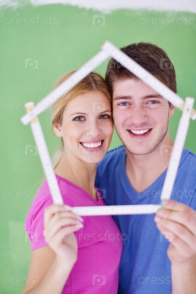 Счастливая молодая пара делает ремонт