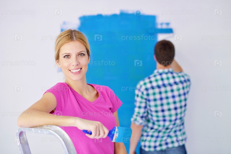 Счастливая молодая пара делает ремонт