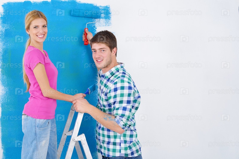 Счастливая молодая пара делает ремонт