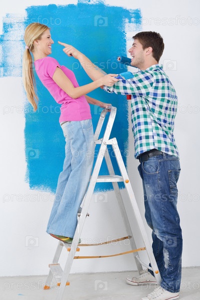 Счастливая молодая пара делает ремонт
