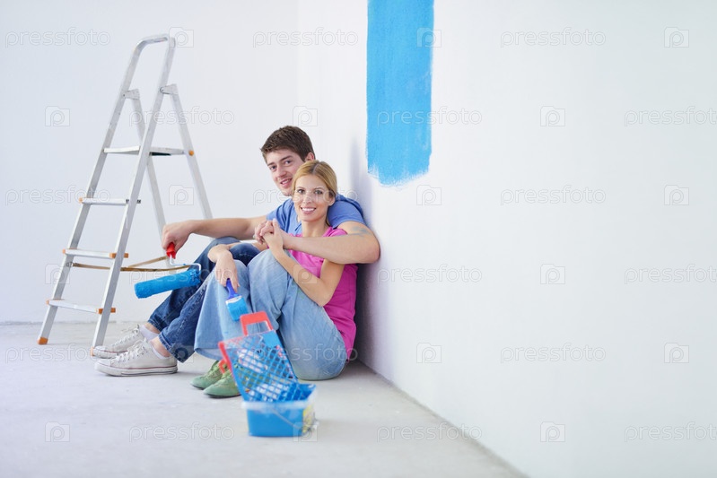 Счастливая молодая пара делает ремонт