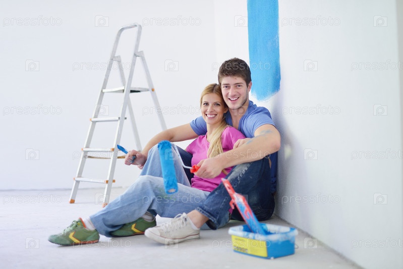 Счастливая молодая пара делает ремонт