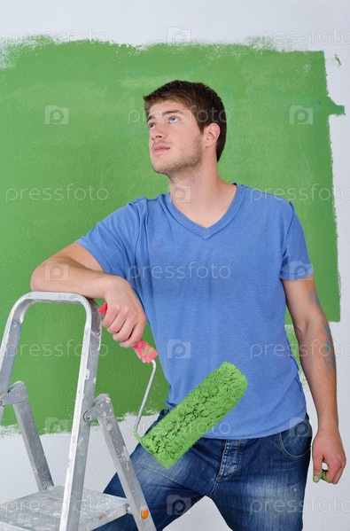 Молодой мужчина делает ремонт