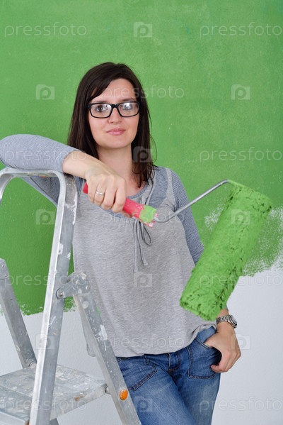 Счастливая молодая женщина делает ремонт