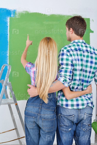 Счастливая молодая пара делает ремонт