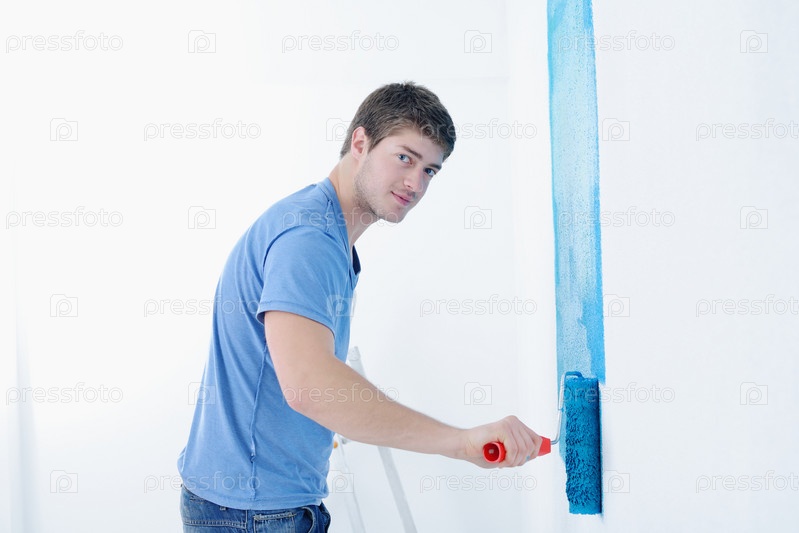Мужчина красит стену