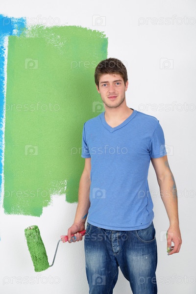 Мужчина красит стену
