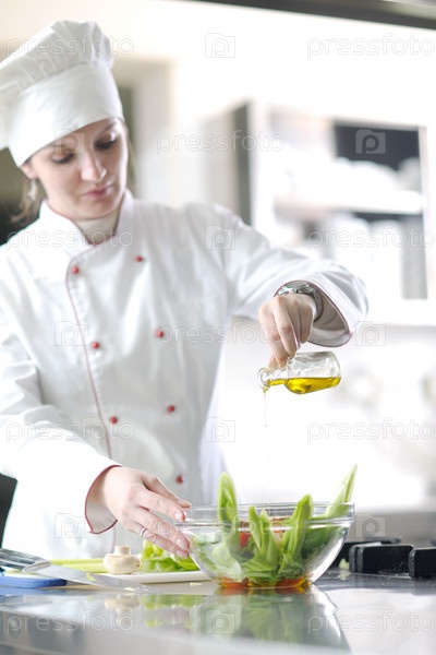 Жнщина-шеф-повар готовит еду