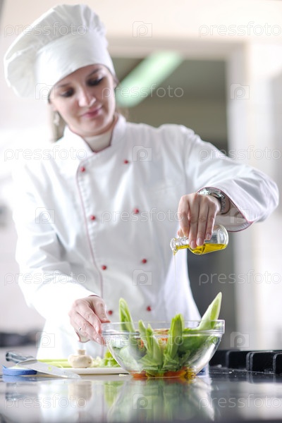 Жнщина-шеф-повар готовит еду