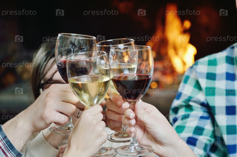 Молодые люди пьют вино в ресторане