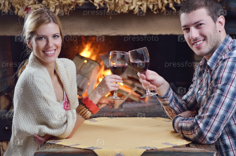 Счастливая пара у камина