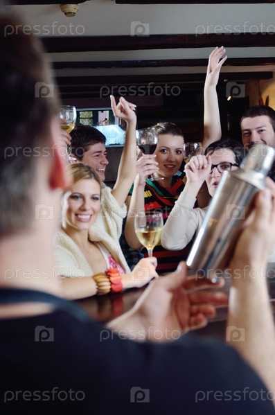 Молодые люди пьют вино в ресторане