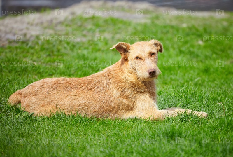 Собака лежит на траве