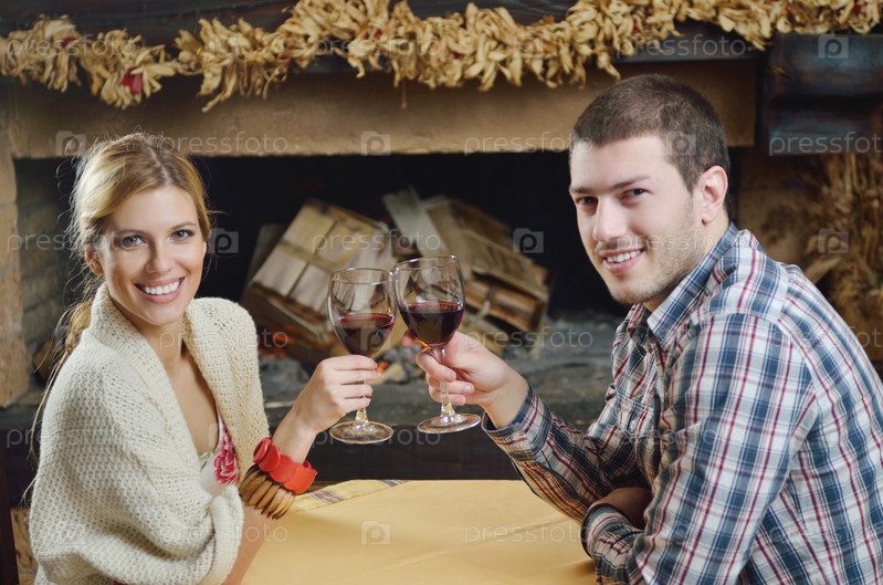 Счастливая молодая пара у камина