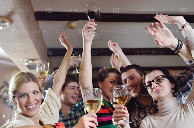 Молодые люди пьют вино в ресторане