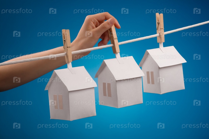 Бумажные домика с прищепками на веревке