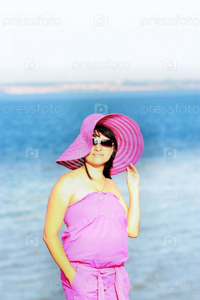 Женщина в шляпе на фоне моря