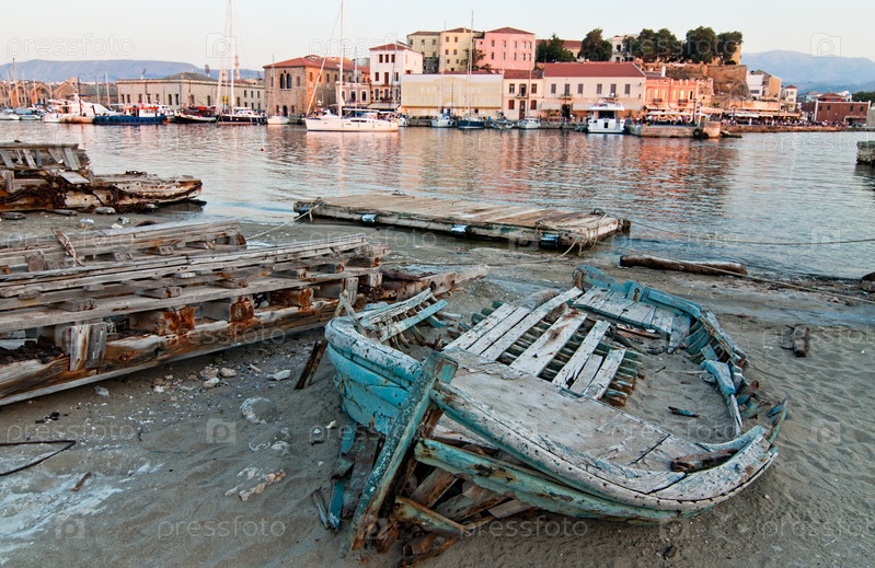 Старая лодка в лучах заходящего солнца. Ханья. Крит