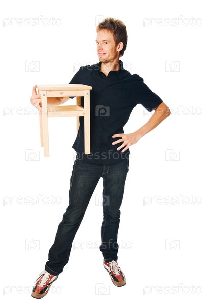 Молодой человек с табуреткой