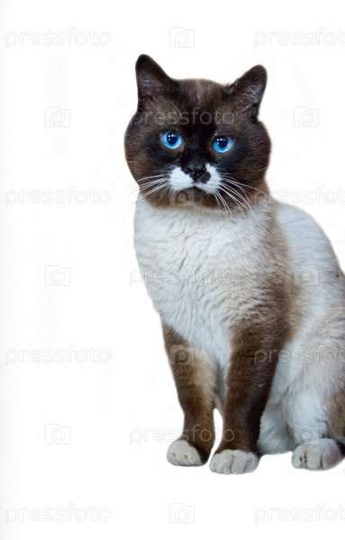 Голубоглазый кот на белом фоне