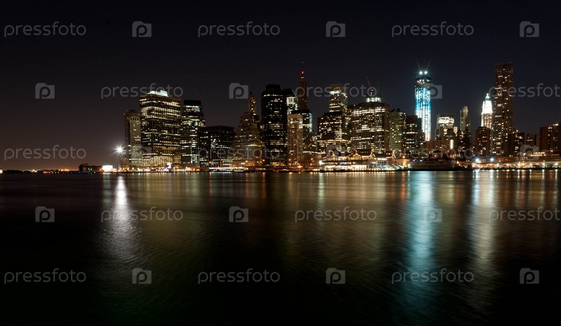 Вид на ночной Нью-Йорк. США