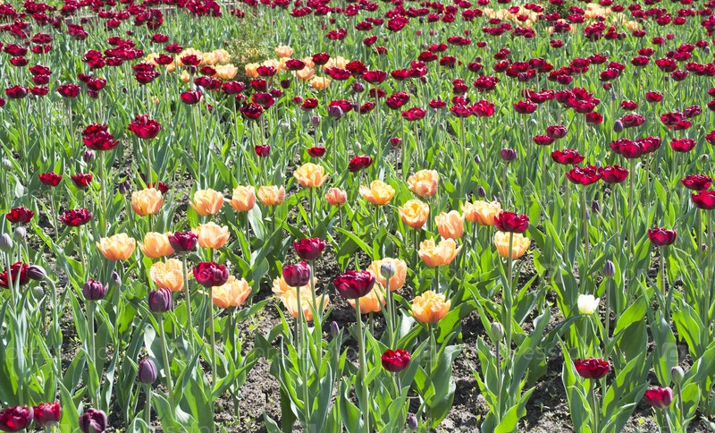 Поле тюльпанов различных цветов