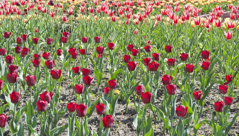 Поле различных видов тюльпанов