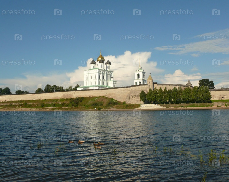 Вид на Псковский кром и Троицкий собор