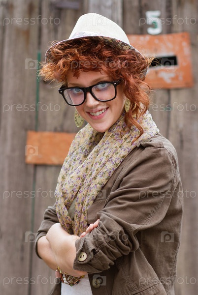 Девушка-хипстер позирует перед камерой на открытом воздухе