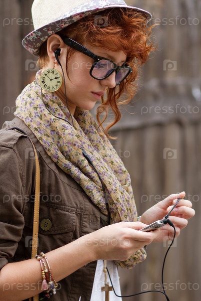 Девушка выбирает музыку в плеере