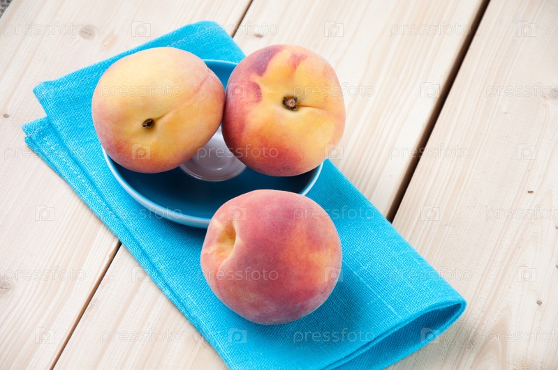 Спелые персики на деревянных досках