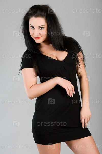 Портрет молодой женщины на сером фоне