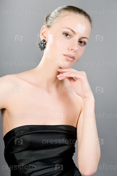 Портрет молодой женщины на сером фоне
