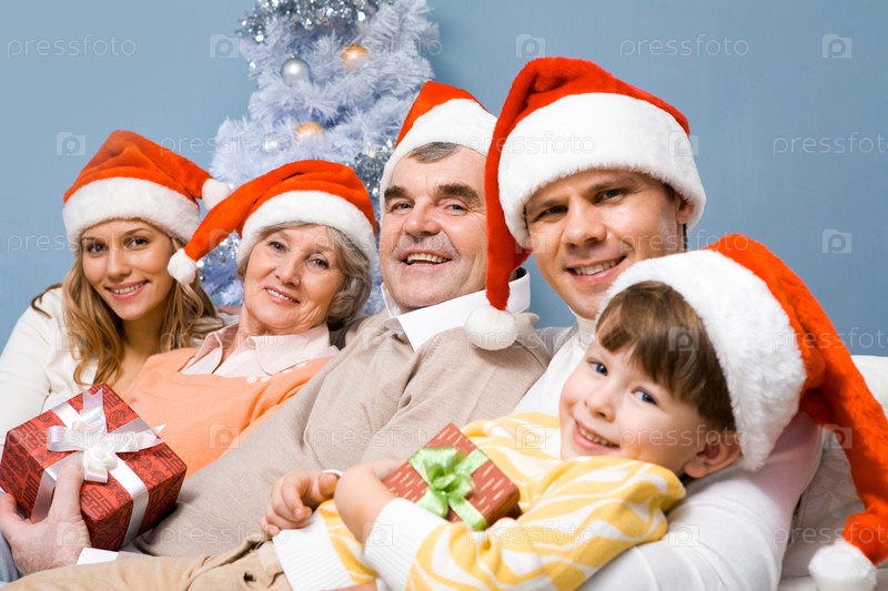 Портрет счастливой семьи в Санта-Капсе на Рождественскую ночь
