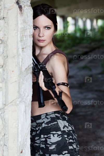 Молодая женщина с автоматом