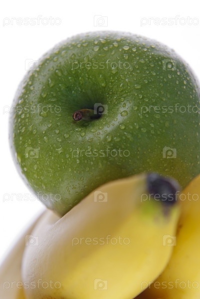 Зеленое яблоко и бананы