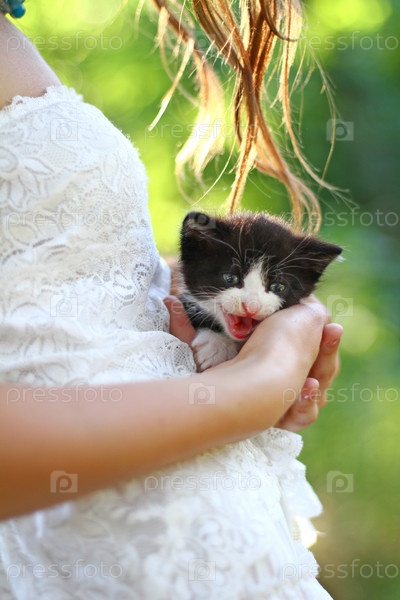 Девушка с котенком на руках