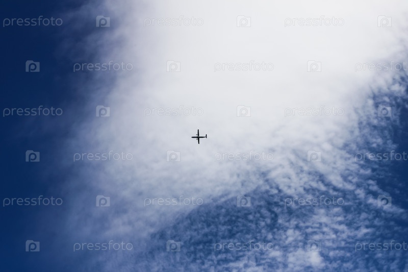 Винтовой самолет в голубом небе
