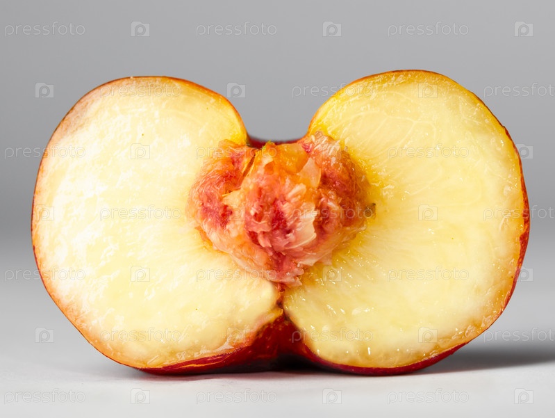 Спелый персик на сером фоне