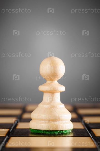Деревянная пешка на сером фоне