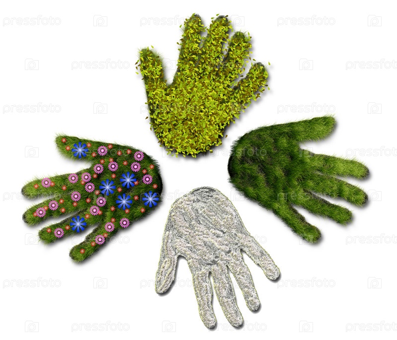 Ладоши с цветами, снегом и травой