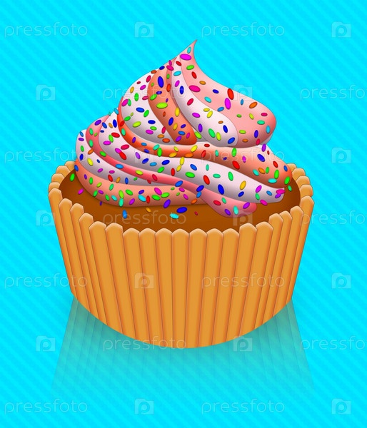 Розовый кекс с глазурью. Иллюстрация